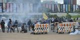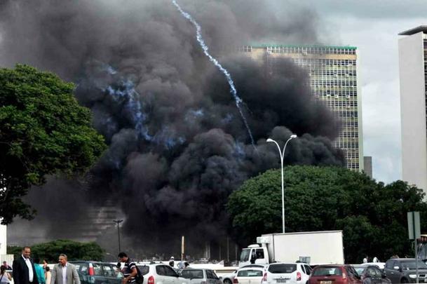 O conflito começou após os PMs montarem uma barreira em frente à Catedral, na intenção de impedir que os manifestantes chegassem até o Congresso Nacional